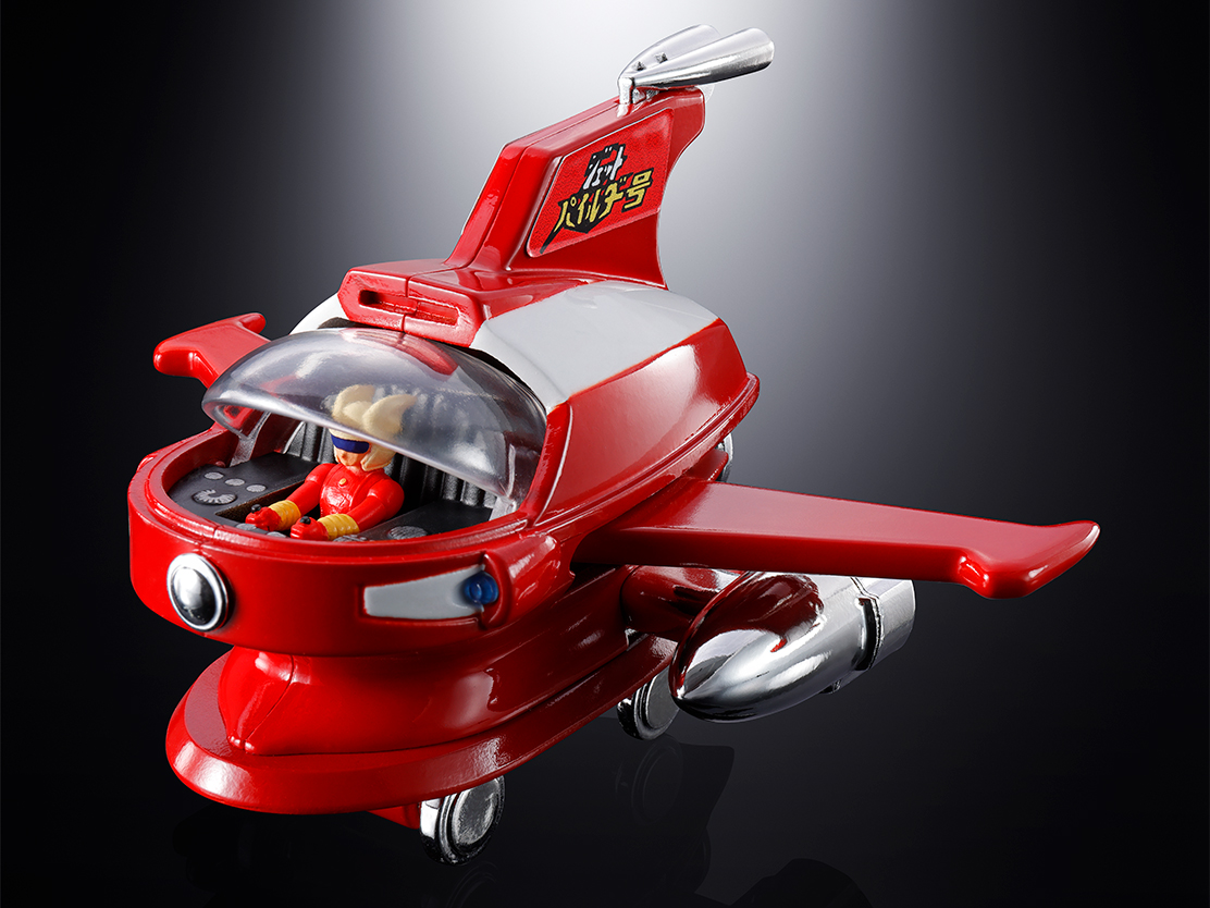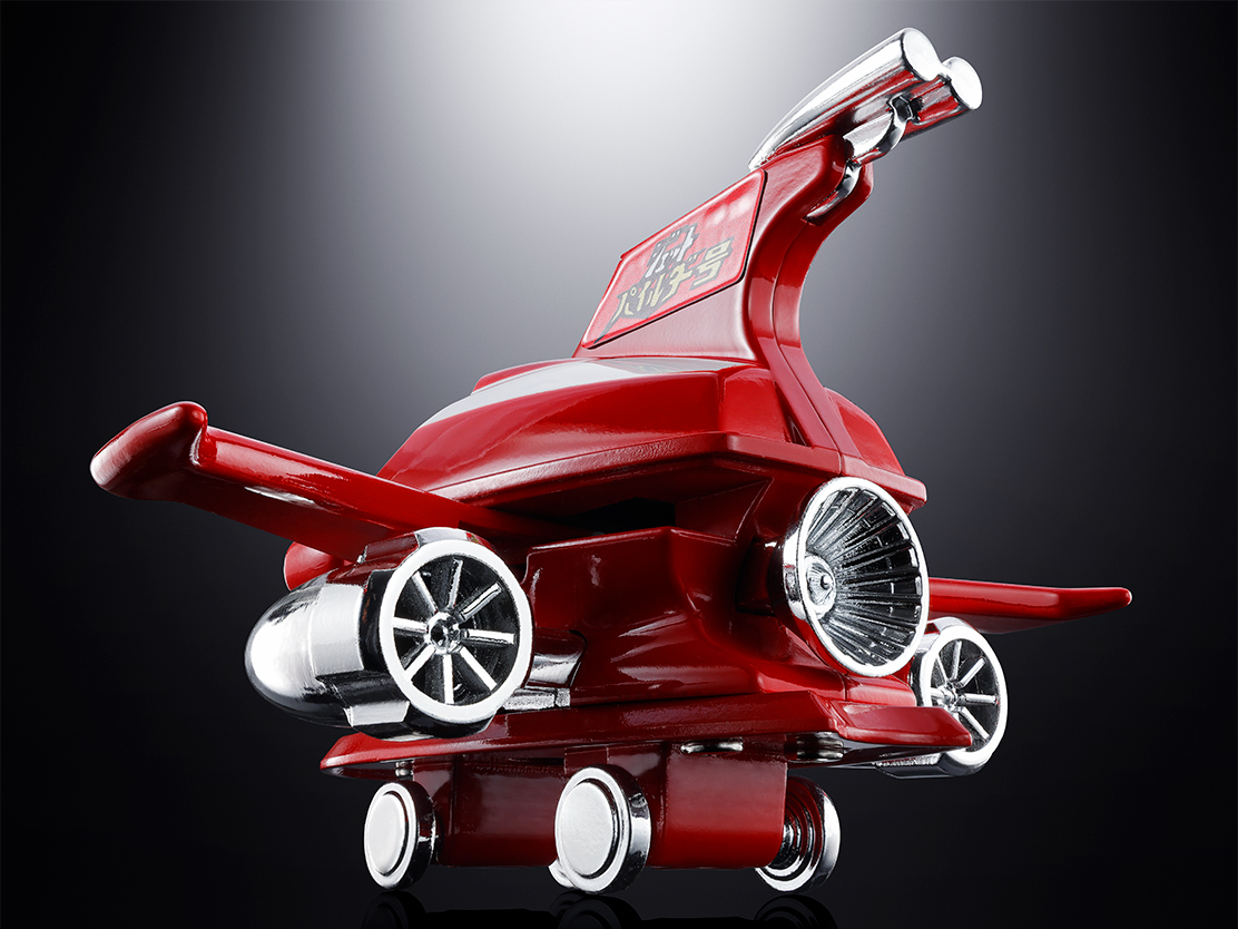 포피니카 「호버파일더호」의 호평을 받아 「제트파일더호」가 부활! 중량감 넘치는 다이캐스트의 기체에, 실버 도금이 아름다운 대형 제트 엔진을 장비. 진홍의 양날개를 격납해, 좌우의 제트 엔진을 끌어들이는 것으로 「무적의 왕자 점보 머신더 마징가Z」(별매)의 머리에 파일더 온! 클리어 파츠의 바람막이를 열면 투갑아의 피규어가 타고 있다.