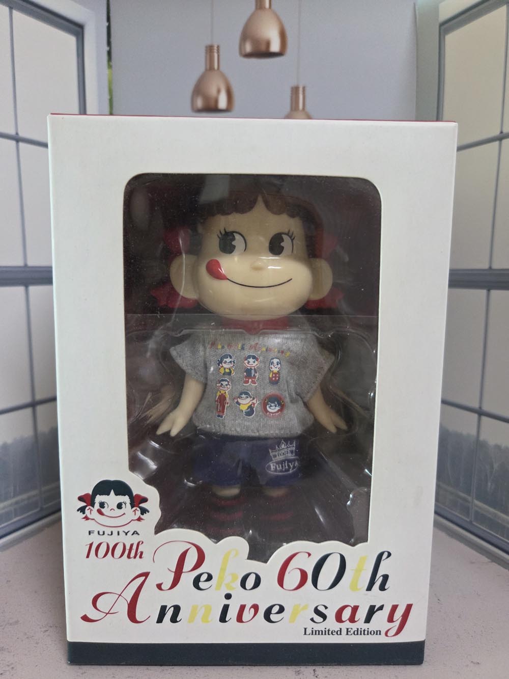 후지야(Fujiya)의 창립 100주년과 브랜드 캐릭터 페코짱(Peko-chan) 탄생 60주년을 기념하여 출시된 '페코 60주년 애니버서리 한정판 인형 입니다.